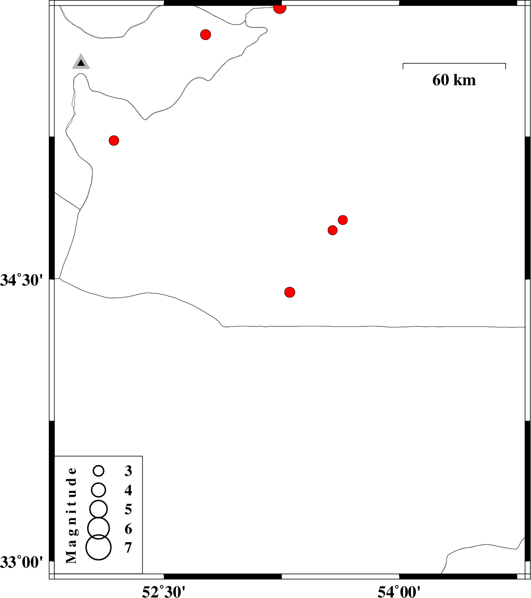 | 2017/06/07 | 09:32:58.1 | 14:02:58.1 | 35.229 | 52.18 | 14 | ML2.8 | Semnan Province, 14 km -West of Garmsar | ||