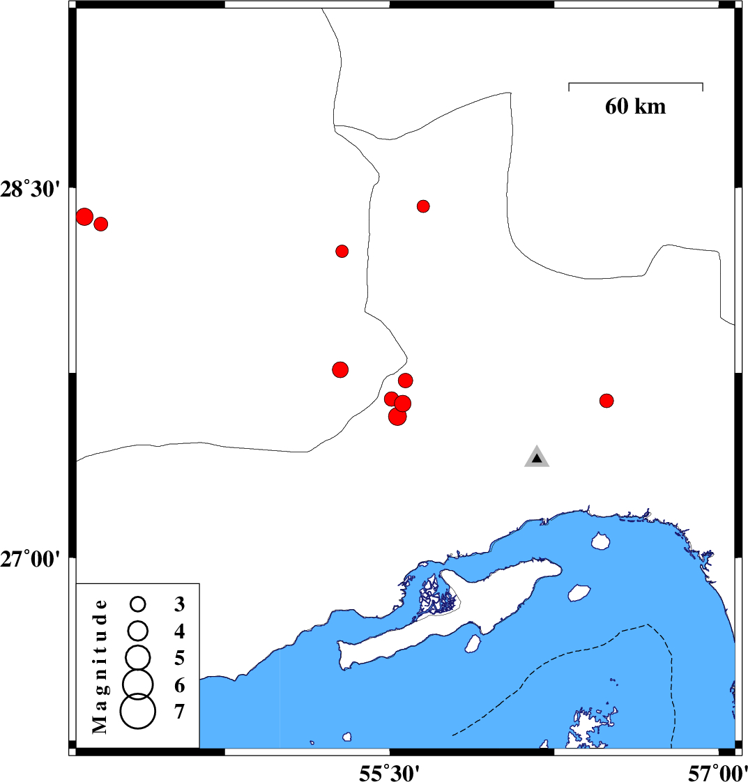 2017/06/09 13:55:02.9 18:25:02.9 27.71955.57218 ML3 Hormozgan Province, 73 km South-West of Hajiabad