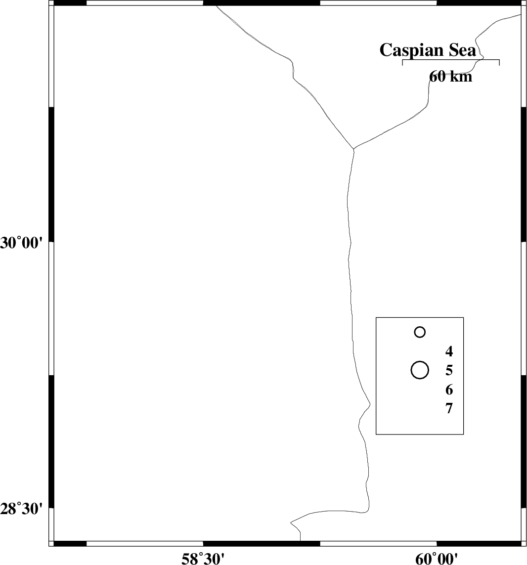 | 2017/06/10 | 04:07:03.4 | 08:37:03.4 | 29.86 | 59.089 | 14 | ML4.7 | Kerman Province, 110 km North-East of Bam | ||
