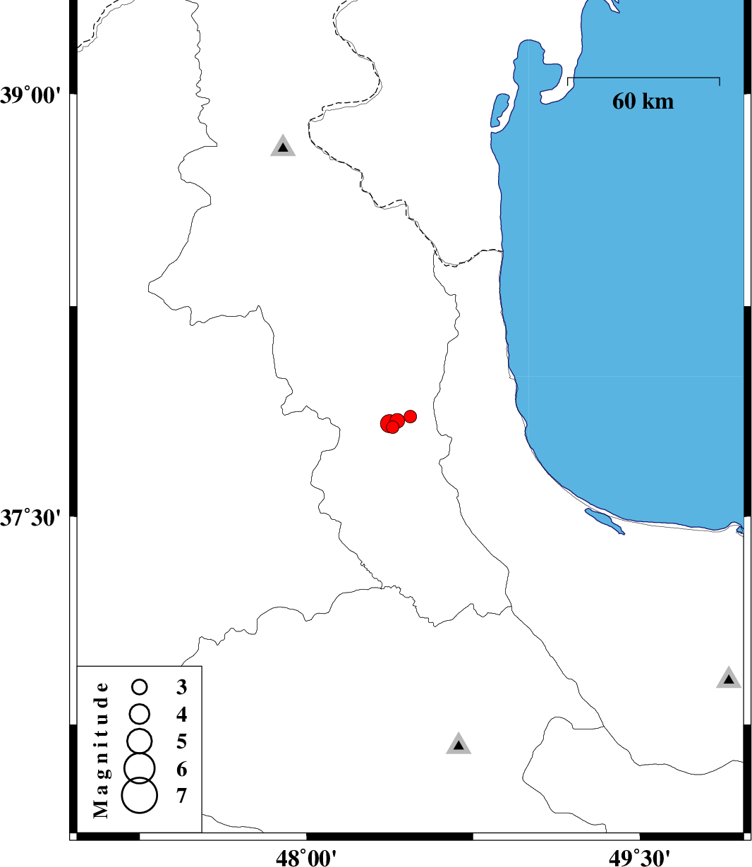 2017/06/11 | 08:07:13.3 | 12:37:13.3 | 37.832 | 48.373 | 15 | ML3.7 | Ardebil Province, 15 km North of Givi |