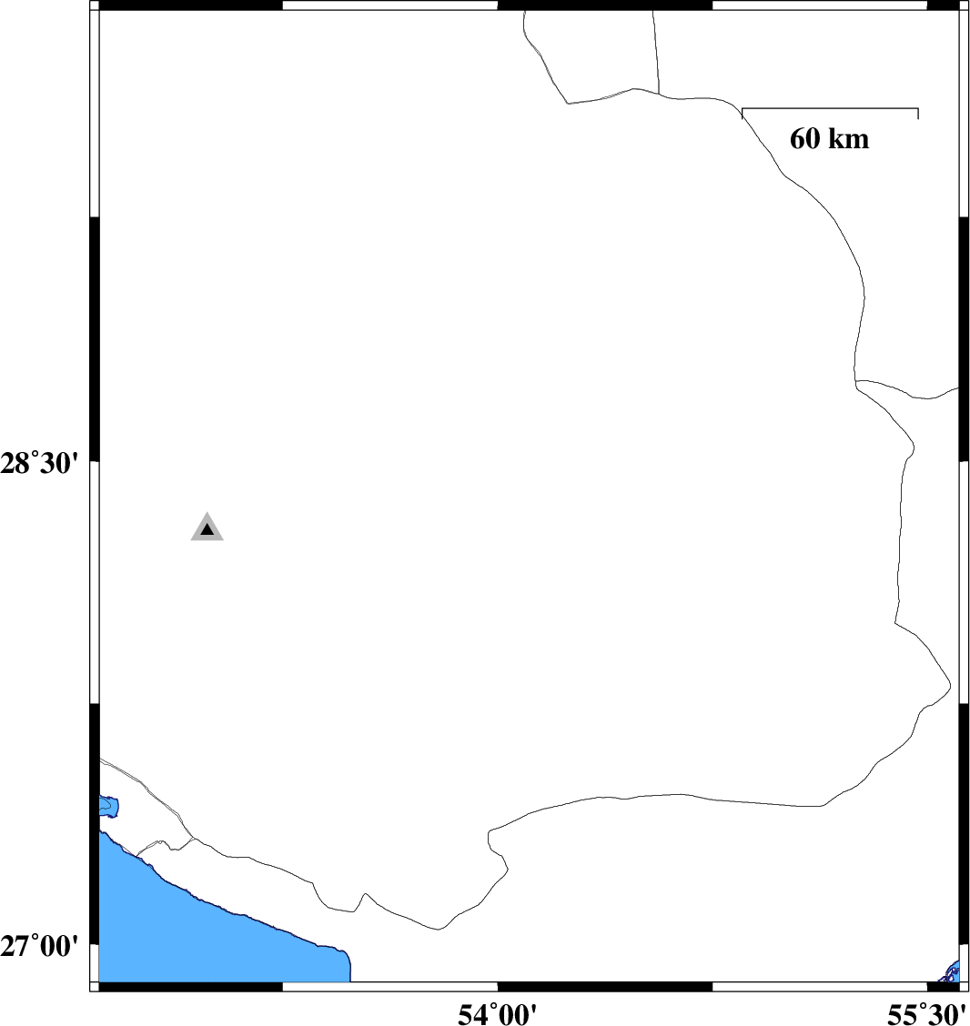 | 2017/06/02 | 12:11:57.8 | 16:41:57.8 | 28.382 | 54.11 | 7 | ML3.5 | Fars Province, 55 km South-East of Jahrom | ||