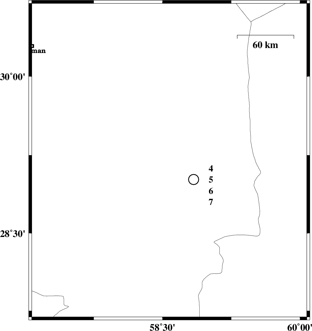 | 2017/05/31 | 11:51:21.7 | 16:21:21.7 | 29.326 | 57.89 | 7 | ML2.8 | Kerman Province, 51 km North-West of Bam | ||