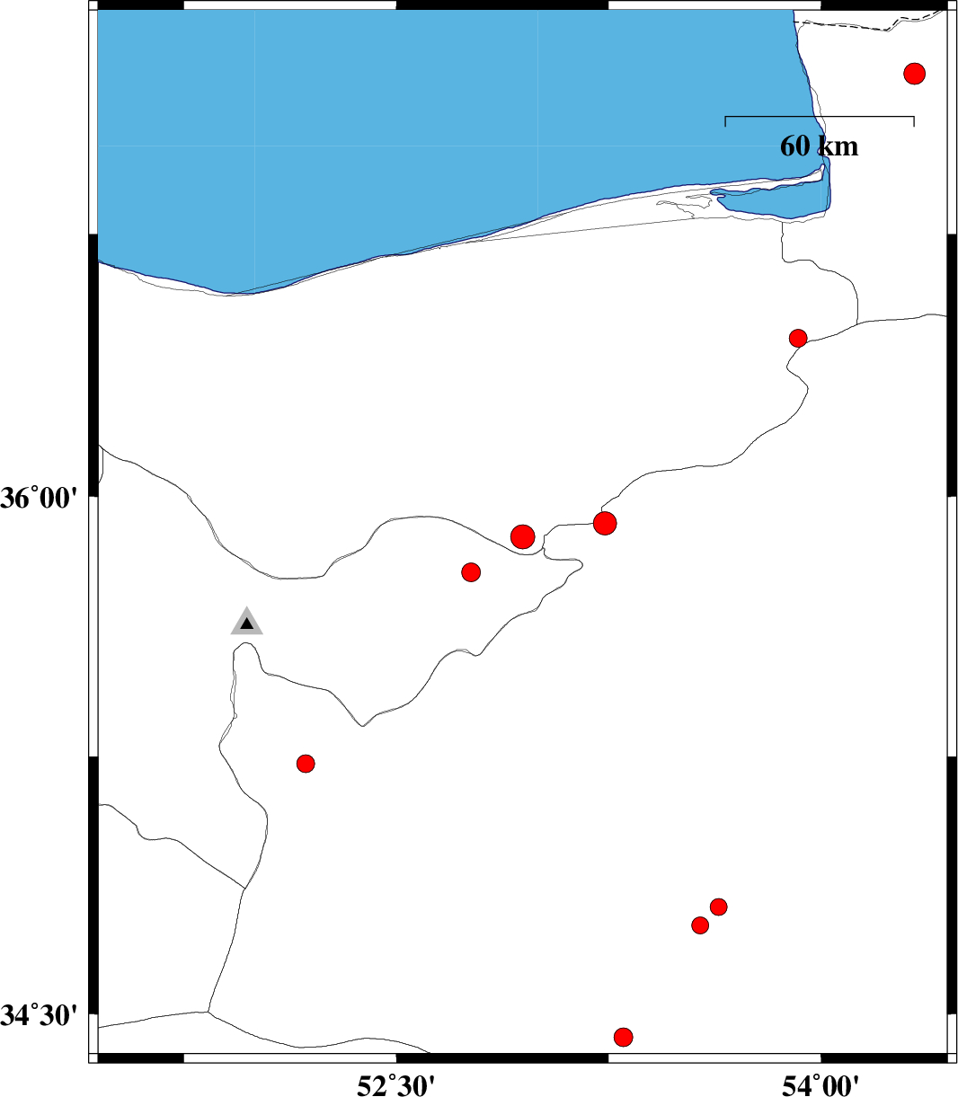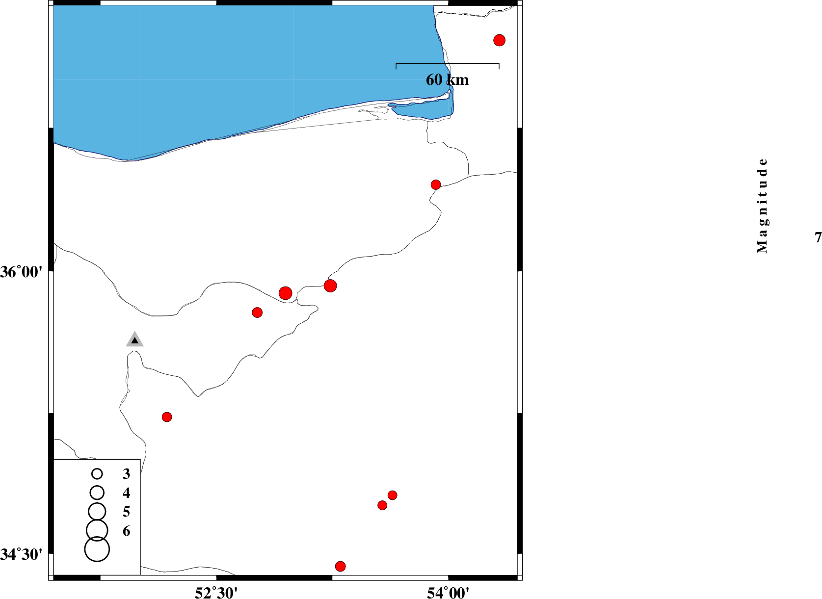 | 2017/06/07 | 09:32:58.1 | 14:02:58.1 | 35.229 | 52.18 | 14 | ML2.8 | Semnan Province, 14 km -West of Garmsar | ||
