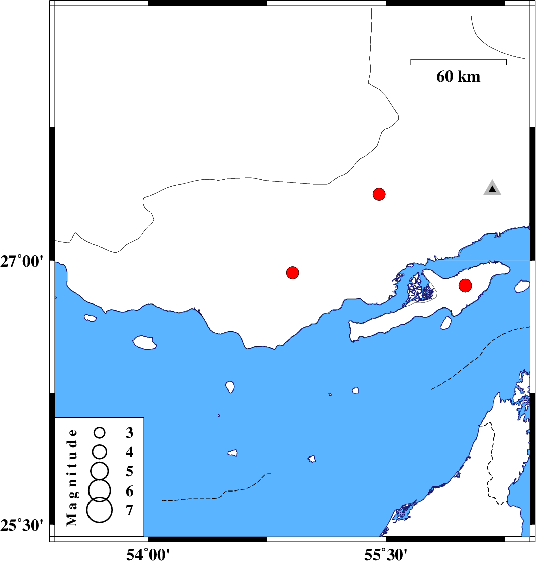 | 2017/06/14 | 10:14:46.0 | 14:44:46.0 | 26.859 | 56 | 7 | ML3.7 | Persian Gulf, 28 km -West of Qeshm | ||