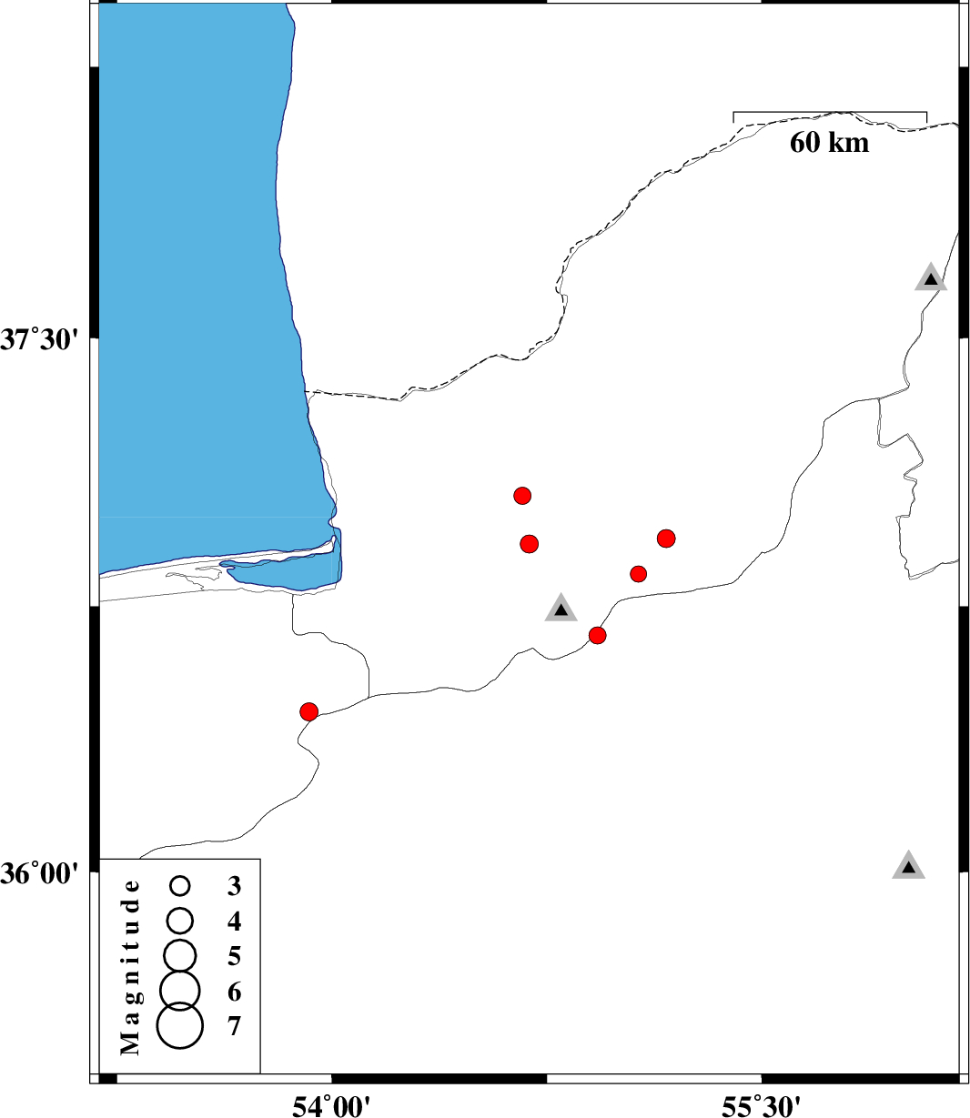 | 2017/05/24 | 04:14:35.0 | 08:44:35.0 | 36.94 | 55.166 | 14 | ML2.8 | Golestan Province, 8 km of Ramian | ||