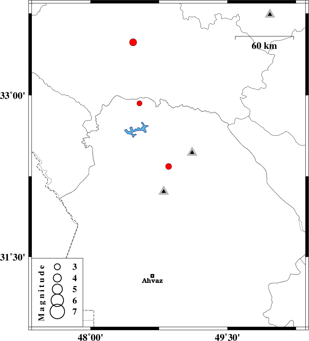 | 2017/06/15 | 18:07:51.5 | 22:37:51.5 | 32.925 | 48.536 | 14 | ML2.6 | Khoozestan Province, 54 km North-East of Andimeshk |