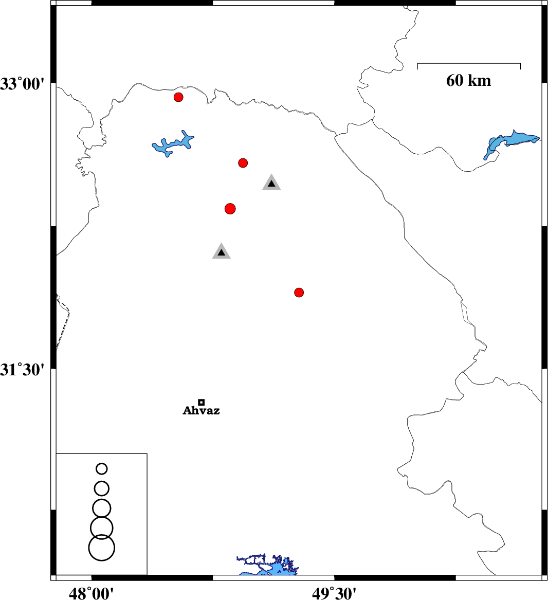 2017/06/19 | 01:43:12.9 | 06:13:12.9 | 32.342 | 48.855 | 14 | ML:3 | Khoozestan Province, 24 km -West of Lali | ||