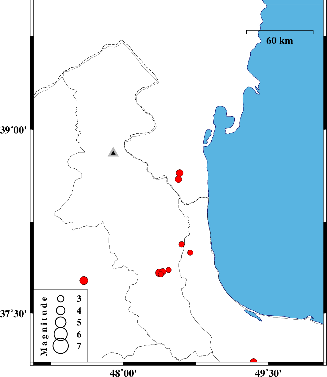 | 2017/06/11 | 08:07:13.3 | 12:37:13.3 | 37.832 | 48.373 | 15 | ML3.7 | Ardebil Province, 15 km North of Givi | ||