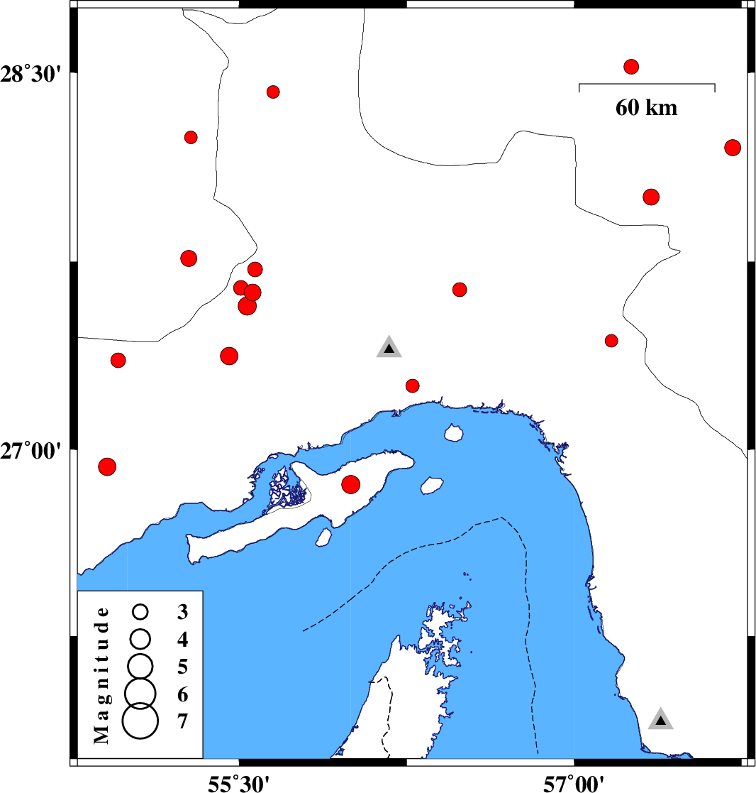 | 2017/06/14 | 10:14:46.0 | 14:44:46.0 | 26.859 | 56 | 7 | ML3.7 | Persian Gulf, 28 km -West of Qeshm | ||