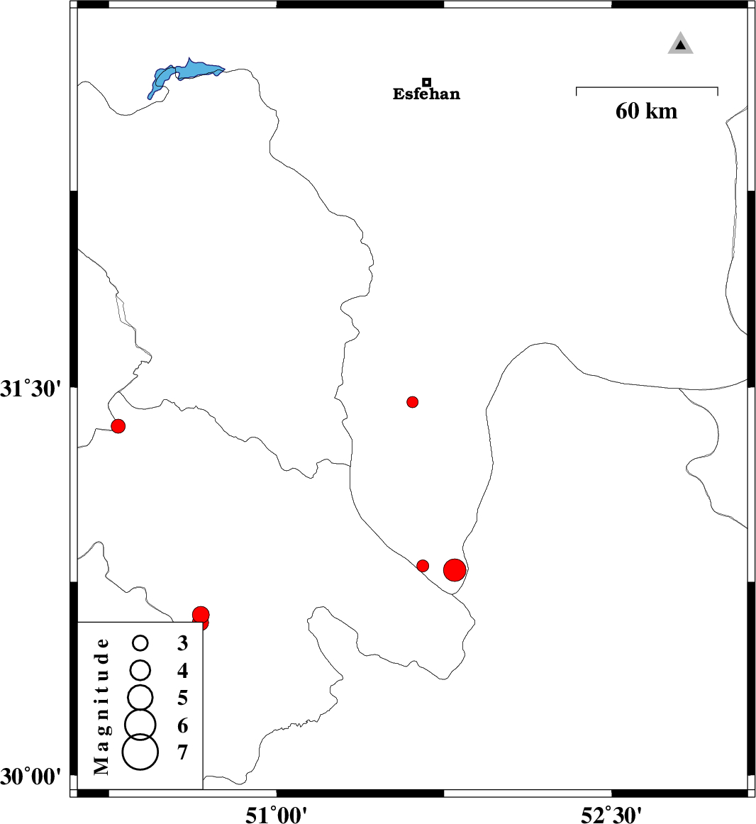 | 2017/06/25 | 02:55:18.9 | 07:25:18.9 | 31.443 | 51.608 | 14 | ML2.3 | Esfahan Province, 5 km of Semirom | ||