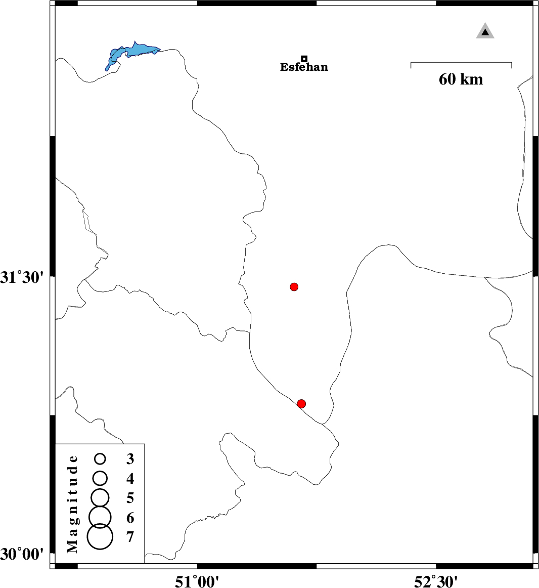 | 2017/06/25 | 02:55:18.9 | 07:25:18.9 | 31.443 | 51.608 | 14 | ML2.3 | Esfahan Province, 5 km of Semirom | ||