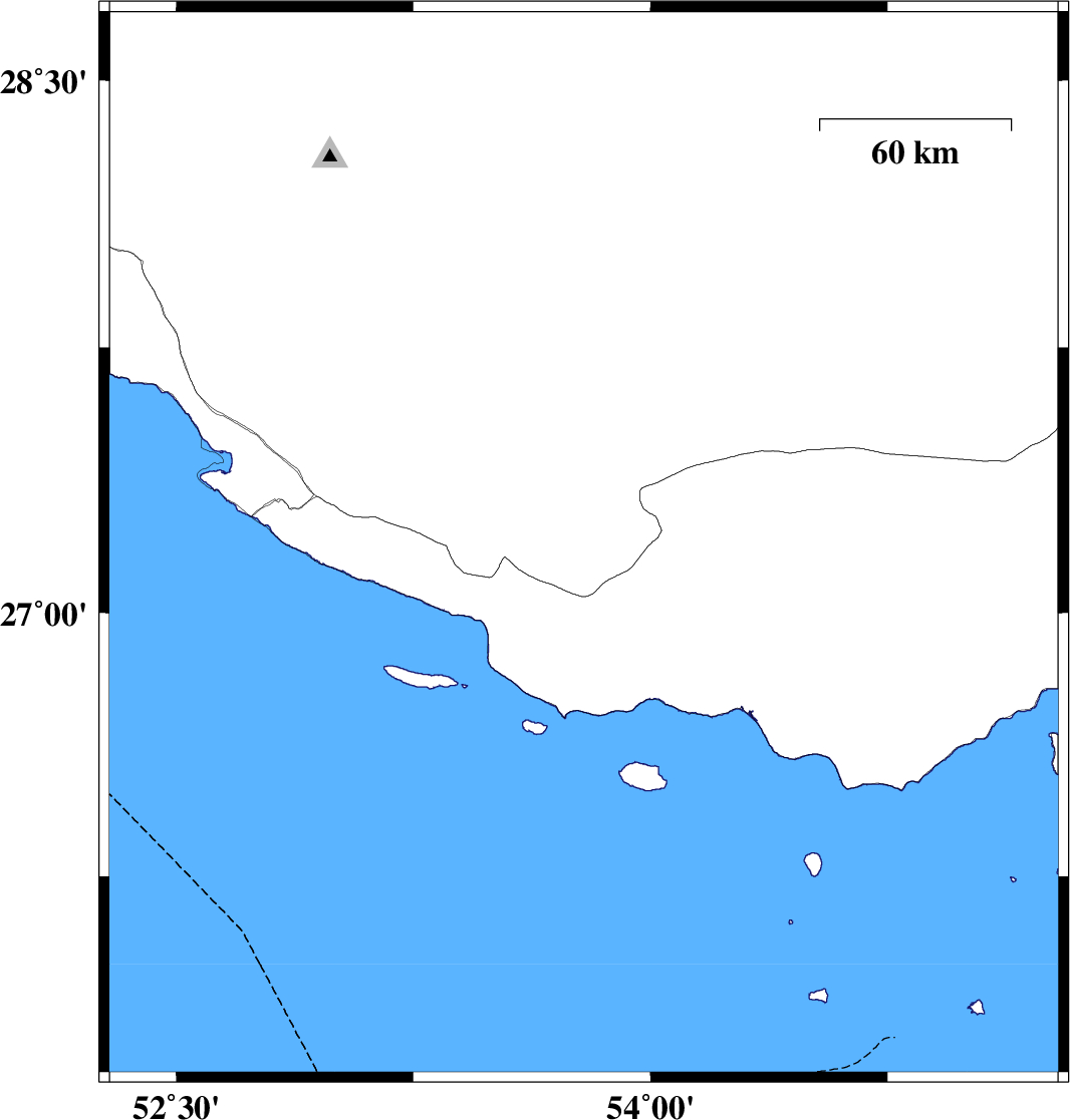 | 2017/06/25 | 02:30:07.2 | 07:00:07.2 | 27.972 | 52.983 | 14 | ML2.7 | Fars Province, 48 km North of Mehr | ||