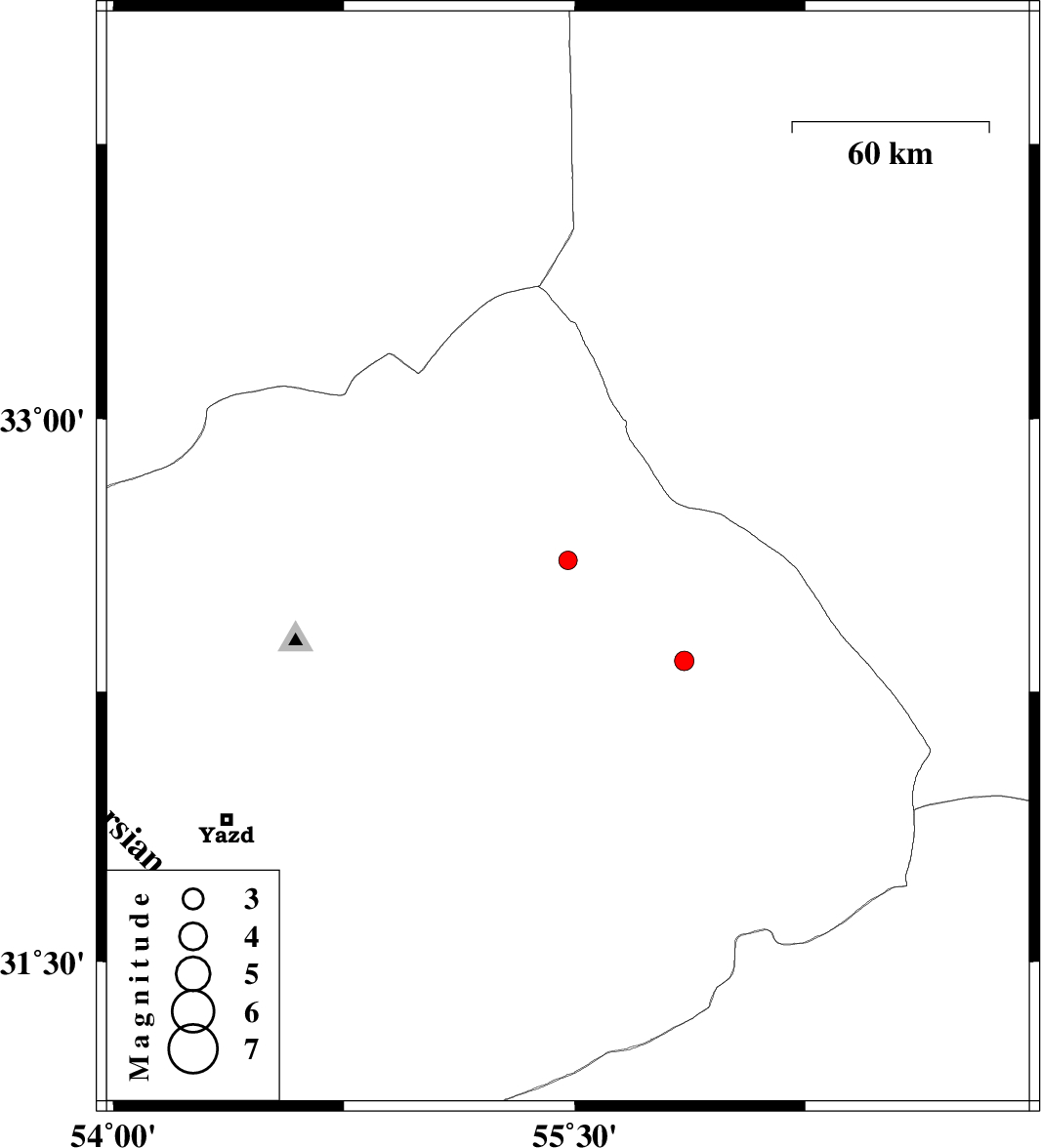 2017/06/30 | 21:51:38.8 | 02:21:38.8 | 32.612 | 55.478 | 15 | ML2.7 | Yazd Province, 112 km North of Bafq | ||