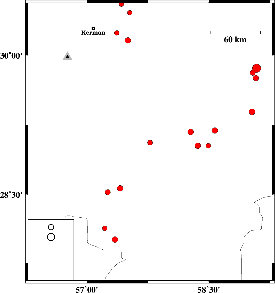 | 2017/06/06 | 12:46:10.5 | 17:16:10.5 | 30.455 | 57.527 | 17 | ML2.6 | Kerman Province, 47 km North-East of Kerman | ||