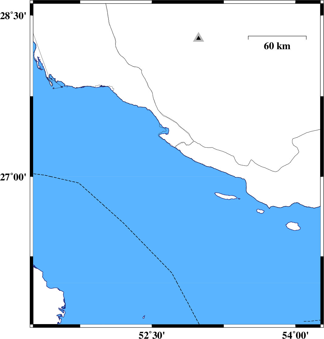 | 2017/06/25 | 02:30:07.2 | 07:00:07.2 | 27.972 | 52.983 | 14 | ML2.7 | Fars Province, 48 km North of Mehr |