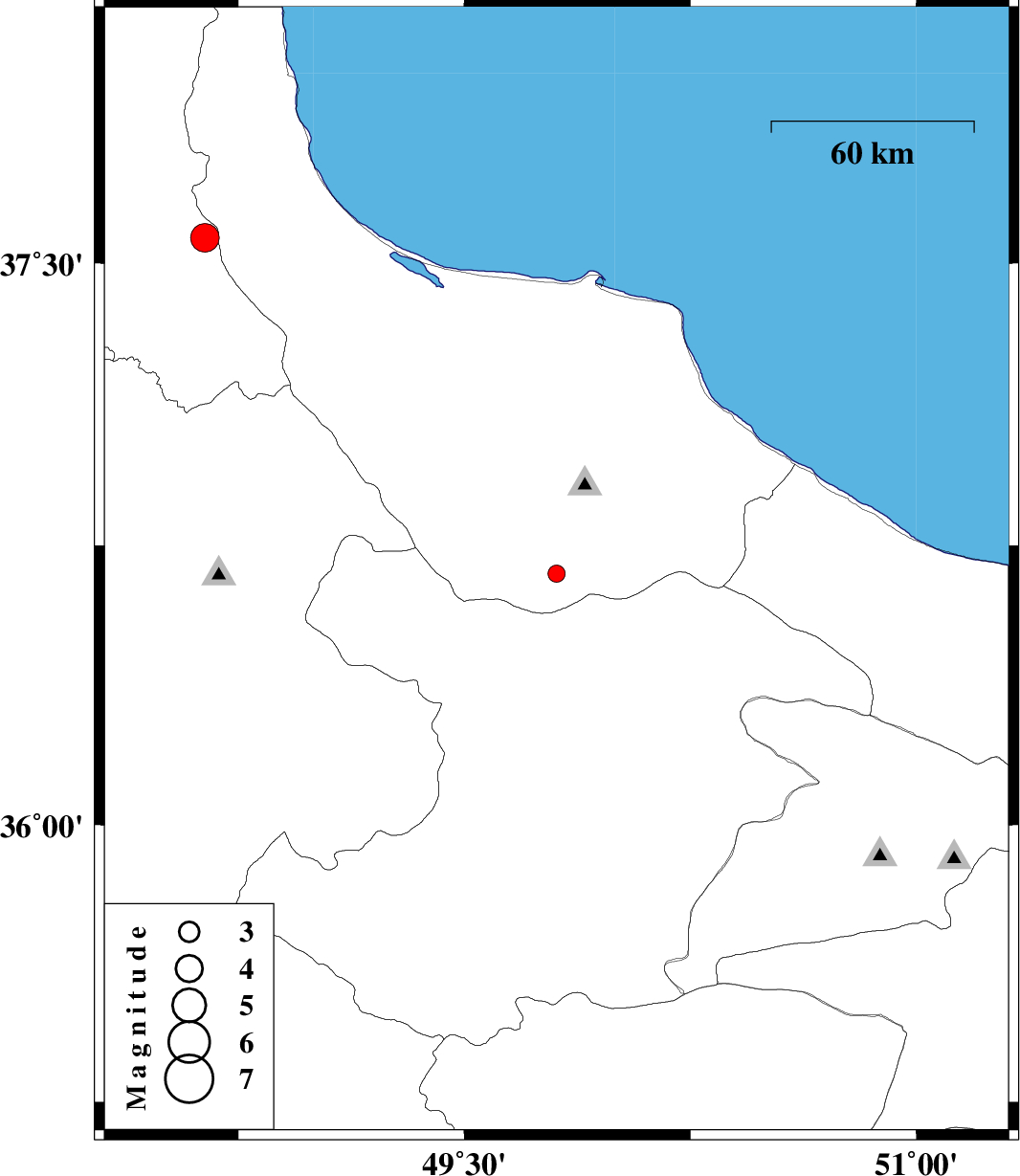 2017/06/26 | 23:59:28.1 | 04:29:28.1 | 37.567 | 48.64 | 6 | ML4.3 | Ardebil Province, 12 km -East of Khalkhal | ||