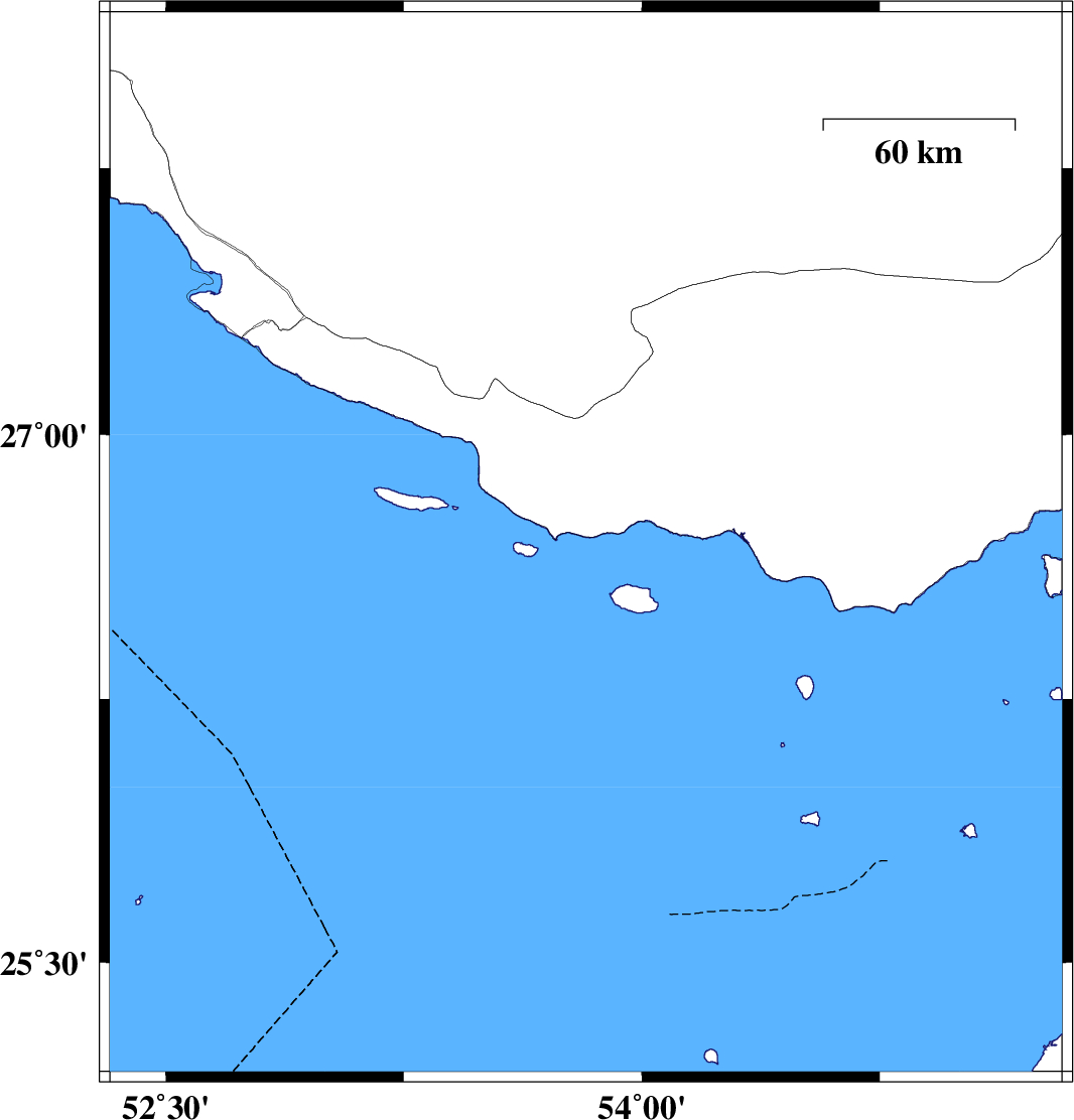 | 2017/06/09 | 09:45:56.4 | 14:15:56.4 | 26.62 | 53.811 | 14 | ML3.7 | Persian Gulf, 84 km South-West of Bastak | ||