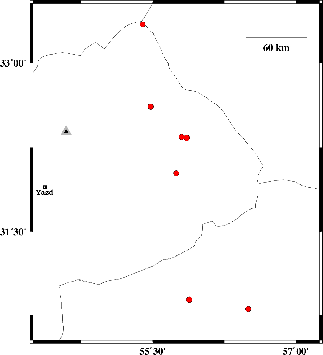 2017/06/16 | 07:23:02.5 | 11:53:02.5 | 32.344 | 55.803 | 16 | ML2.7 | Yazd Province, 91 km North-East of Bafq | ||