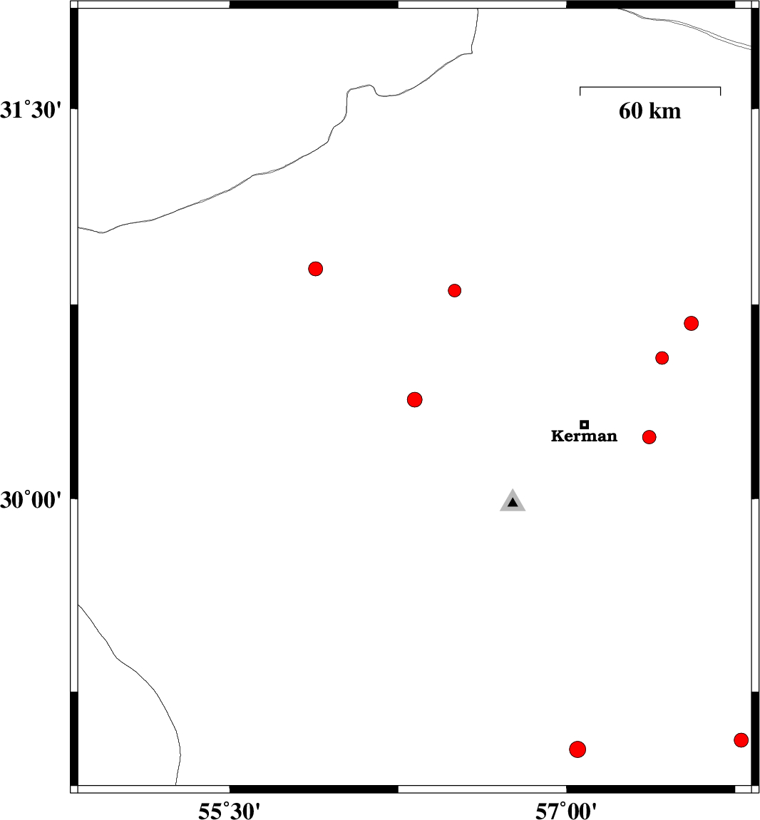 2017/06/09 | 15:05:58.7 | 19:35:58.7 | 30.678 | 57.555 | 14 | ML2.8 | Kerman Province, 63 km North-East of Kerman |