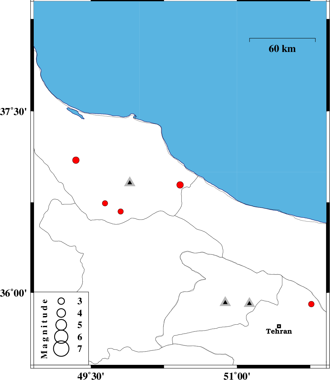 | 2017/06/16 | 02:26:52.7 | 06:56:52.7 | 36.742 | 49.645 | 7 | ML2.5 | Gilan Province, 21 km -East of Rudbar | ||