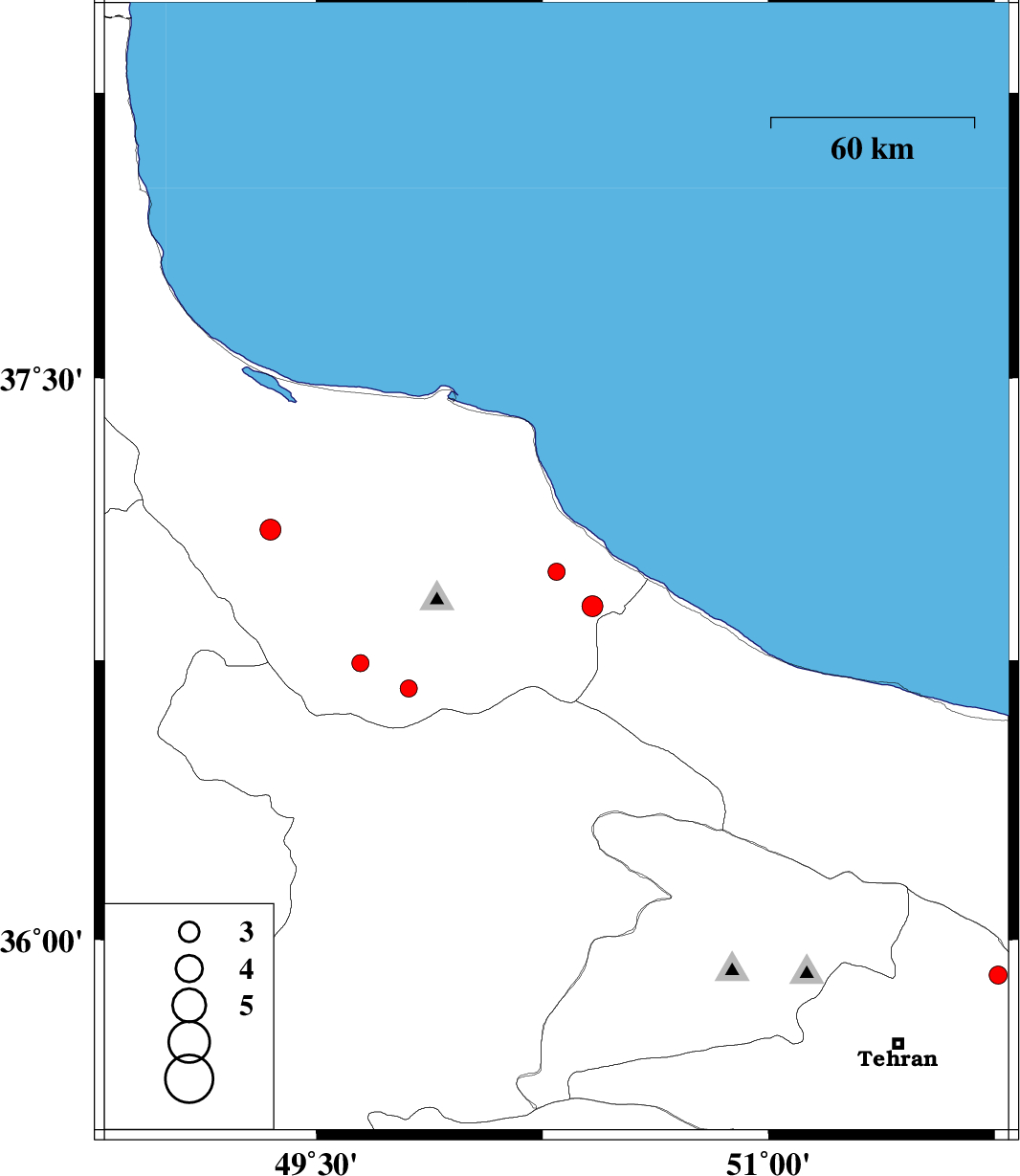 2017/06/08 | 10:18:02.3 | 14:48:02.3 | 35.736 | 48.913 | 15 | ML2.8 | Ghazvin Province, 41 km North-West of Razan | ||