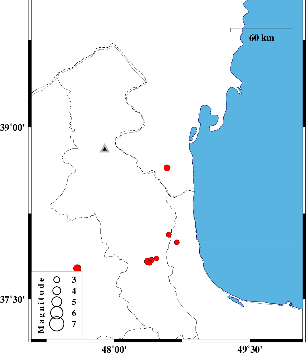 2017/06/11 | 08:07:13.3 | 12:37:13.3 | 37.832 | 48.373 | 15 | ML3.7 | Ardebil Province, 15 km North of Givi | ||