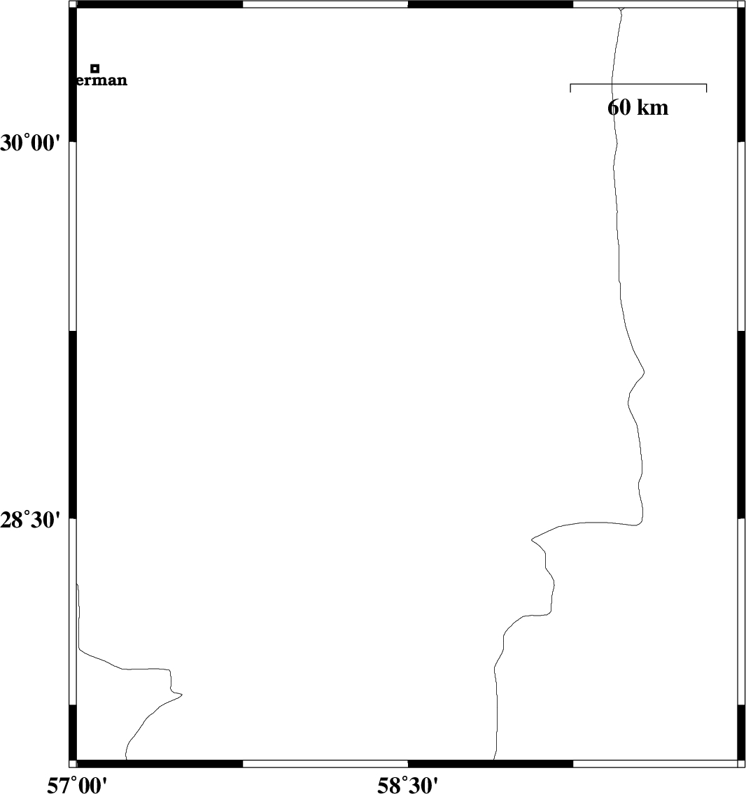 | 2017/06/09 | 22:20:10.8 | 02:50:10.8 | 29.756 | 59.08 | 14 | ML3.1 | Kerman Province, 100 km North-East of Bam | ||