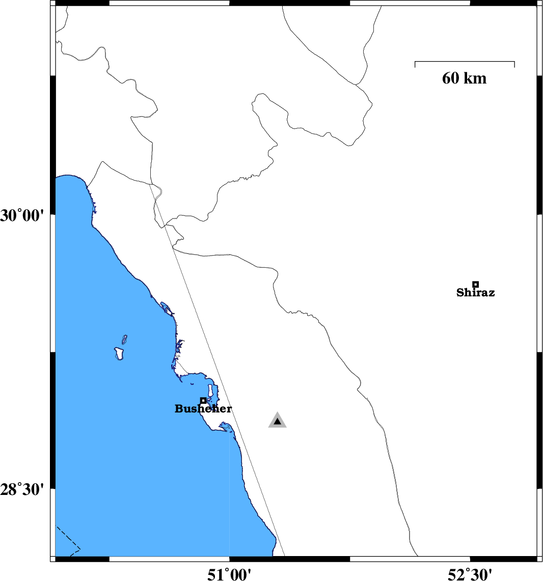 | 2017/05/09 | 03:00:27.3 | 07:30:27.3 | 28.659 | 51.222 | 17 | ML3.1 | Bushehr Province, 15 km -West of Khormog | ||