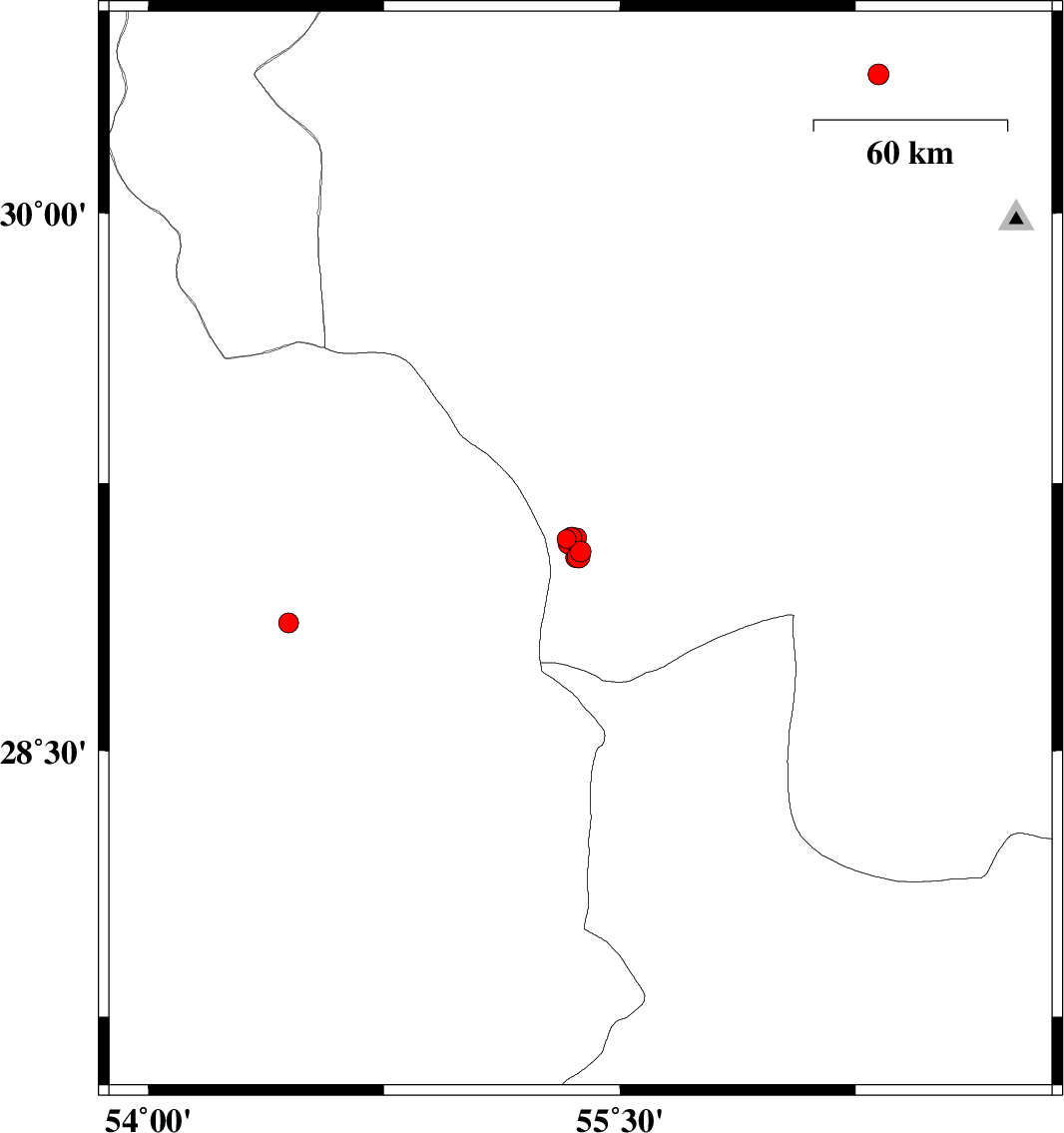 2017/07/13 11:07:08.5 15:37:08.5 29.08955.33414 ML:2.7 Kerman Province, 52 km South-West of Sirjan