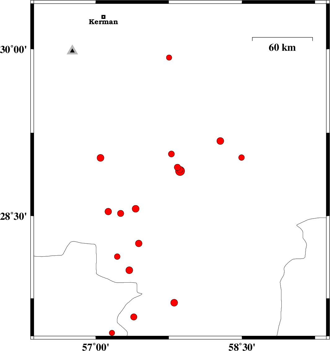 | 2017/07/04 | 03:59:59.3 | 08:29:59.3 | 28.539 | 57.128 | 6 | ML3.1 | Kerman Province, 61 km South-West of Jiroft | ||
