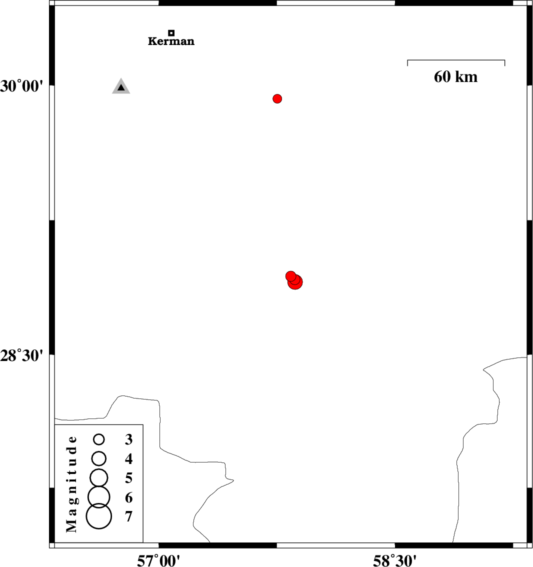 | 2017/07/15 | 18:18:15.5 | 22:48:15.5 | 28.906 | 57.865 | 14 | ML4.2 | Kerman Province, 29 km North-East of Jiroft | ||