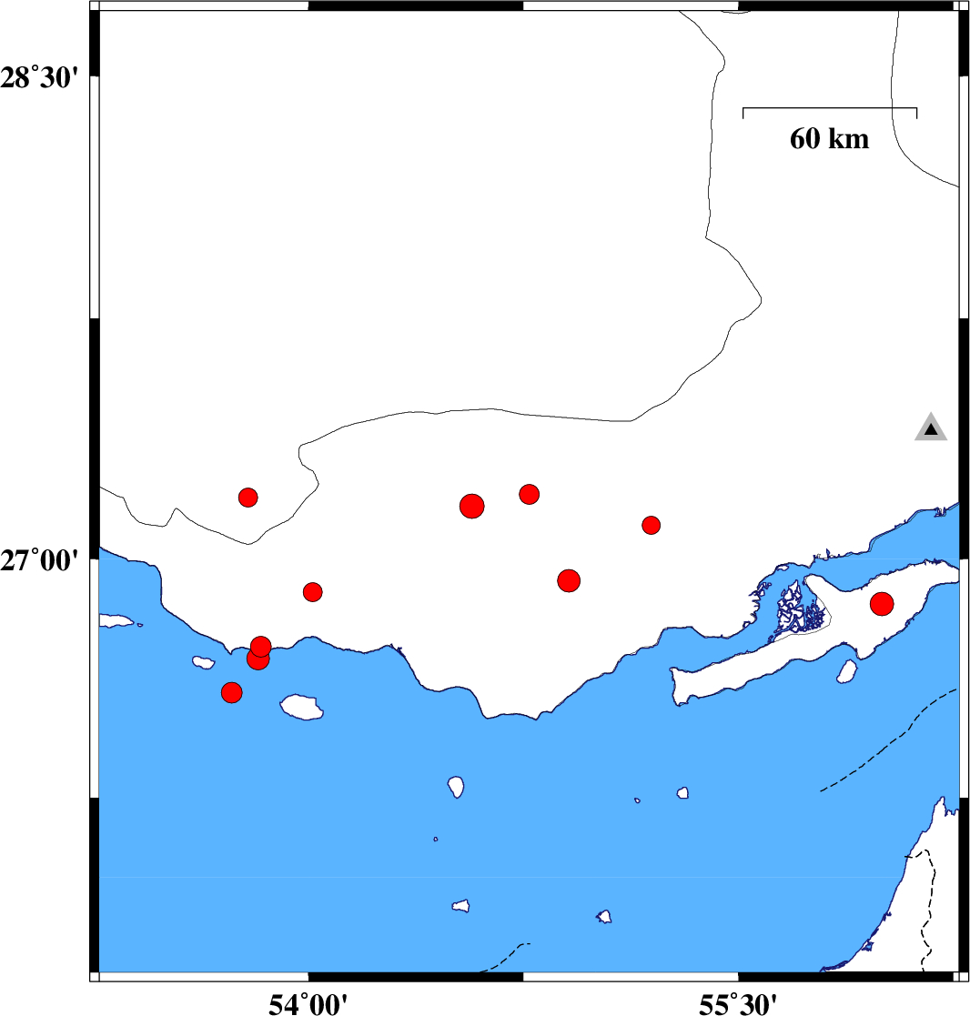 2017/06/14 | 10:14:46.0 | 14:44:46.0 | 26.859 | 56 | 7 | ML3.7 | Persian Gulf, 28 km -West of Qeshm |