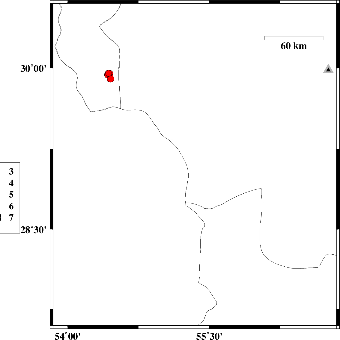 Map Region : lat:27.595-30.595  lon:53.846-56.846