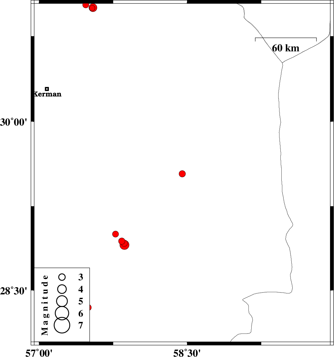| 2017/07/21 | 01:27:53.7 | 05:57:53.7 | 29.537 | 58.45 | 15 | ML3 | Kerman Province, 48 km North of Bam | ||