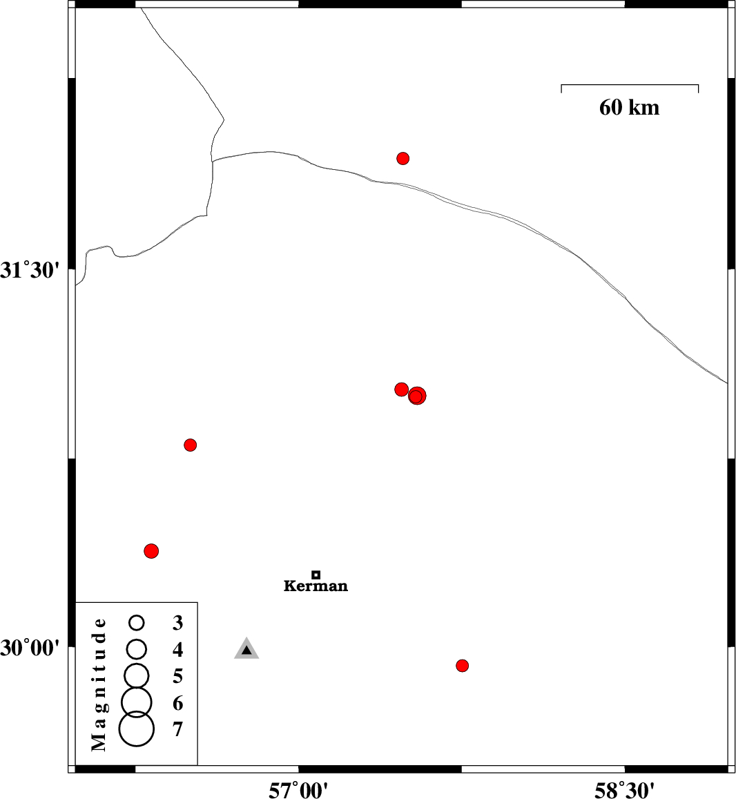 2017/07/13 | 23:29:36.5 | 03:59:36.5 | 29.925 | 57.753 | 18 | ML:2.6 | Kerman Province, 76 km South-East of Kerman | ||