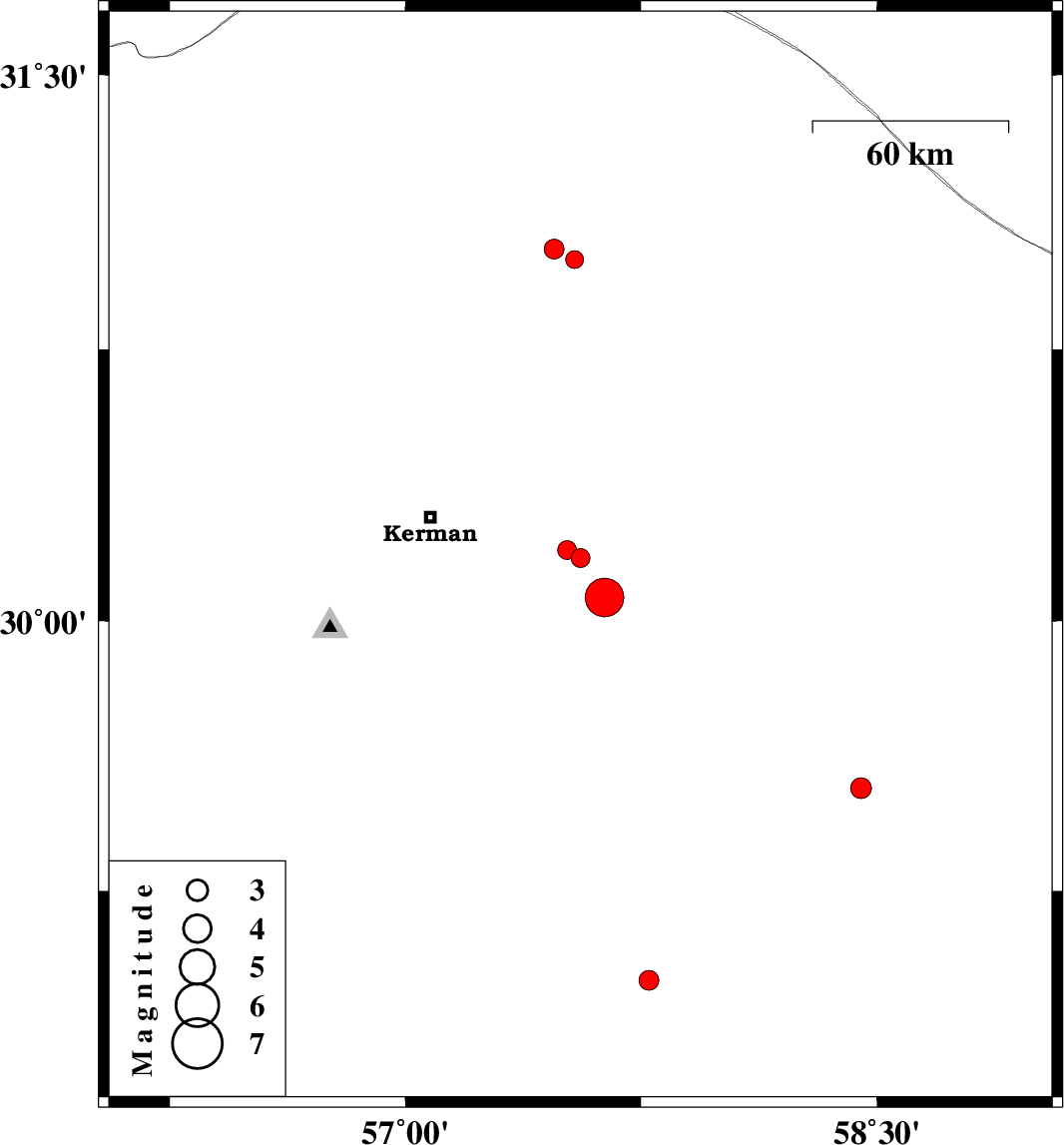 2017/07/23 17:32:12.3 22:02:12.3 30.06557.63411 Mb5.5 Kerman Province, 59 km South-East of Kerman