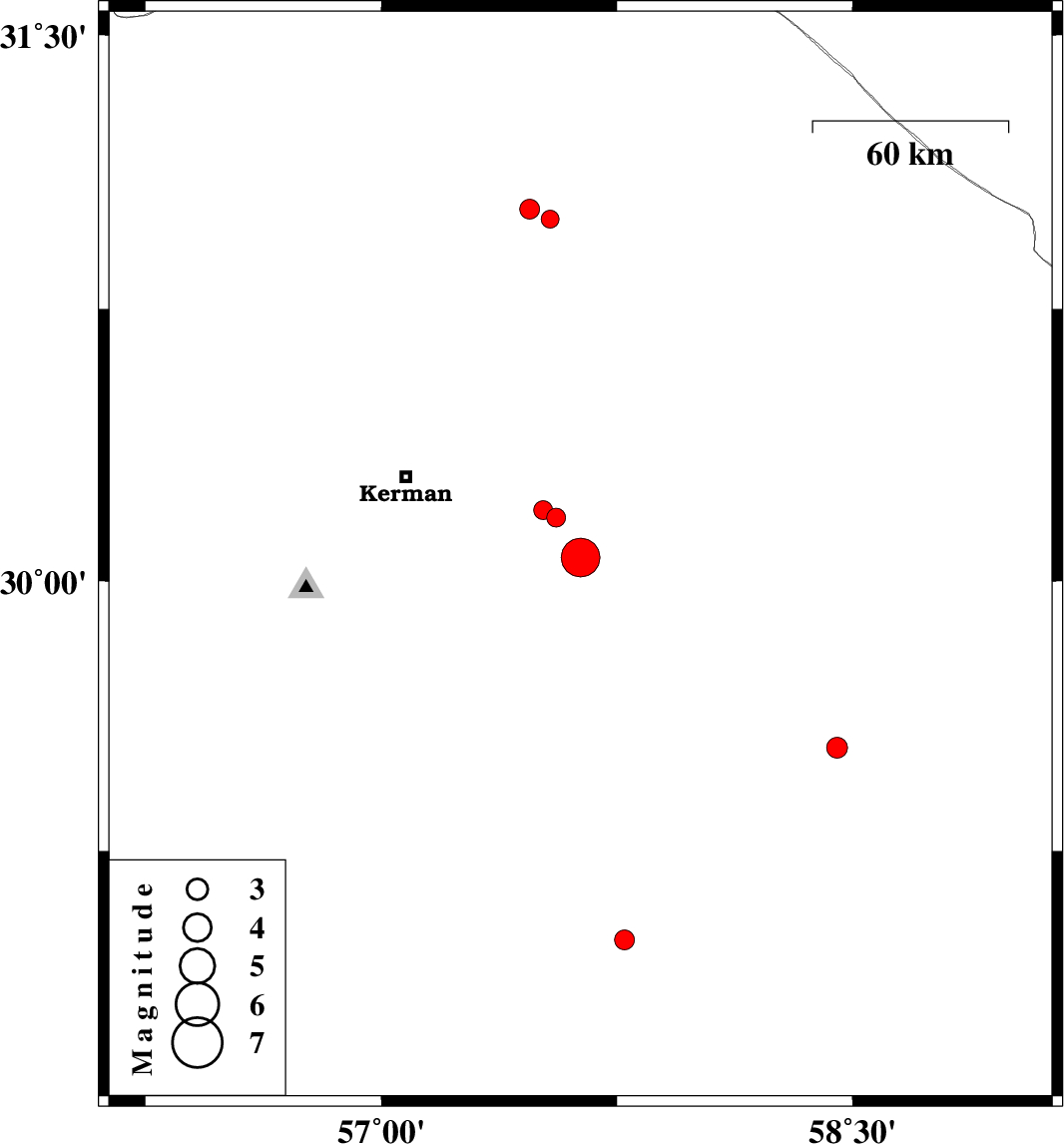 2017/07/23 17:32:12.3 22:02:12.3 30.06557.63411 Mb5.5 Kerman Province, 59 km South-East of Kerman