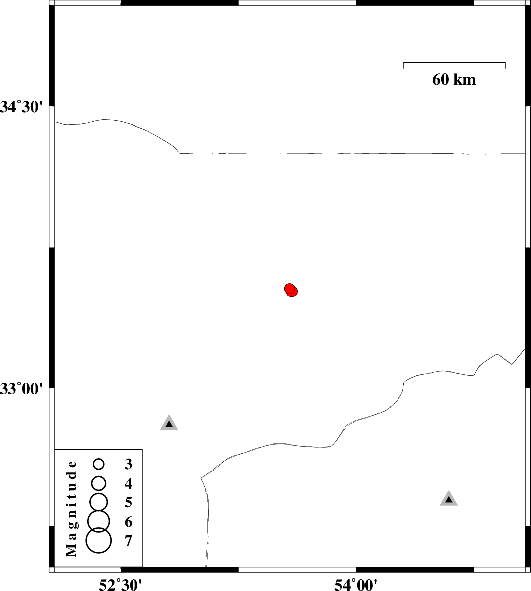 | 2017/07/20 | 15:54:42.6 | 20:24:42.6 | 33.516 | 53.591 | 14 | ML3.3 | Esfahan Province, 86 km North-East of Nain |
