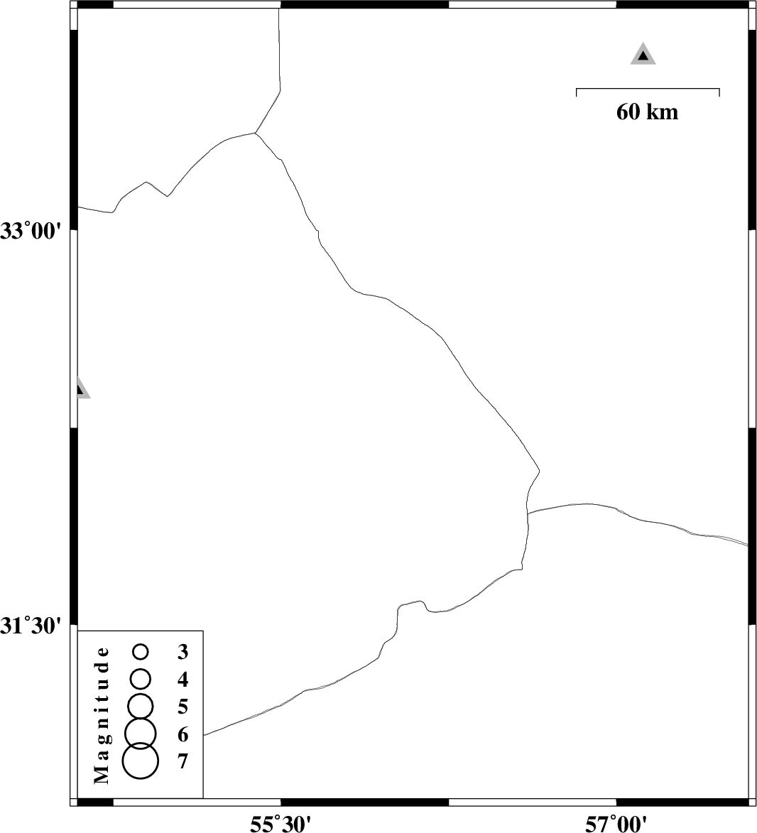| 2017/08/01 | 00:02:56.8 | 04:32:56.8 | 32.331 | 56.09 | 14 | ML2.8 | Yazd Province, 104 km North-East of Bafq |