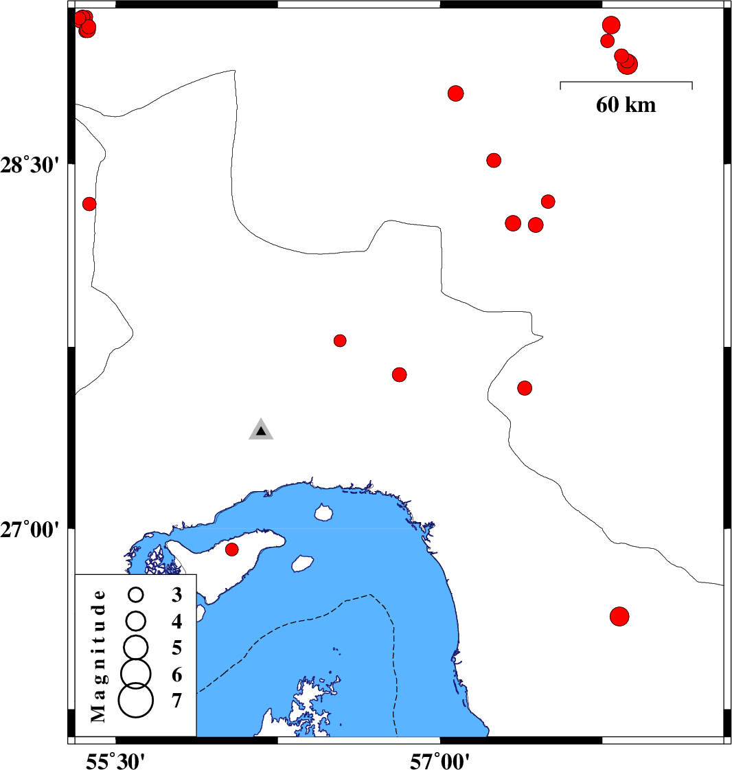 | 2017/07/19 | 22:06:43.5 | 02:36:43.5 | 26.914 | 56.037 | 12 | ML2.7 | Persian Gulf, 23 km -West of Qeshm | ||