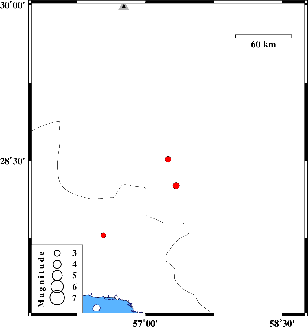 | 2017/08/04 | 23:38:18.6 | 04:08:18.6 | 28.257 | 57.336 | 14 | ML3.3 | Kerman Province, 49 km North-West of Kahnuj | ||