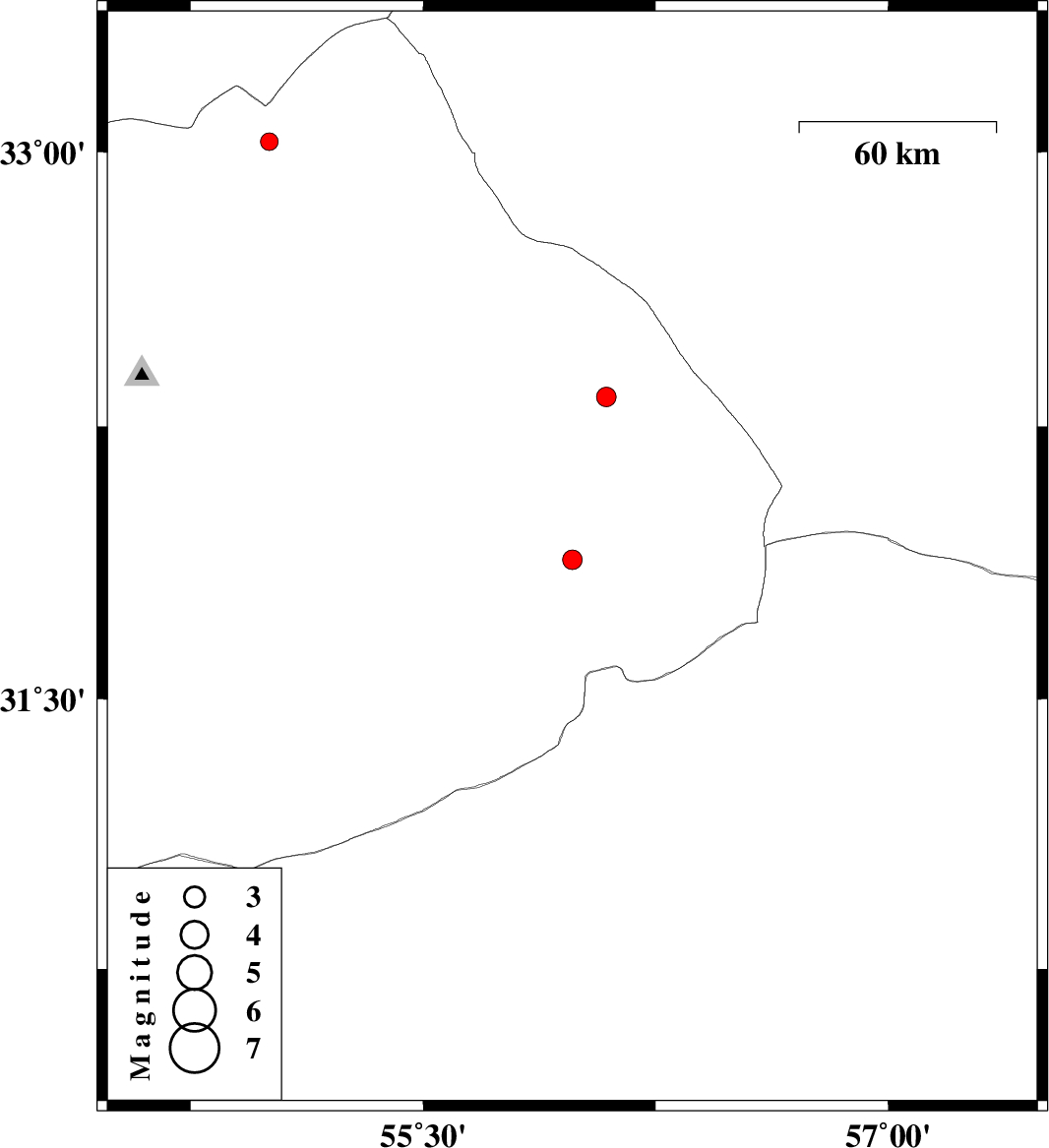 | 2017/08/08 | 01:30:18.7 | 06:00:18.7 | 31.883 | 55.981 | 14 | ML2.8 | Yazd Province, 63 km North-East of Bafq | ||