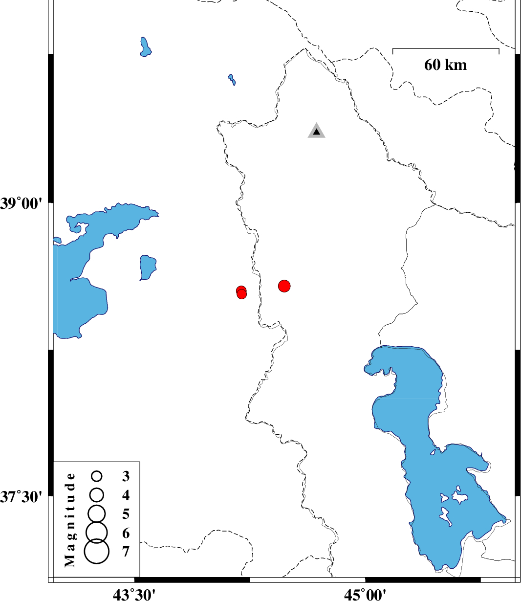 | 2017/08/09 | 04:05:39.1 | 08:35:39.1 | 38.552 | 44.194 | 14 | ML2.9 | Turkey, 60 km South-West of Seyah Cheshmah | ||