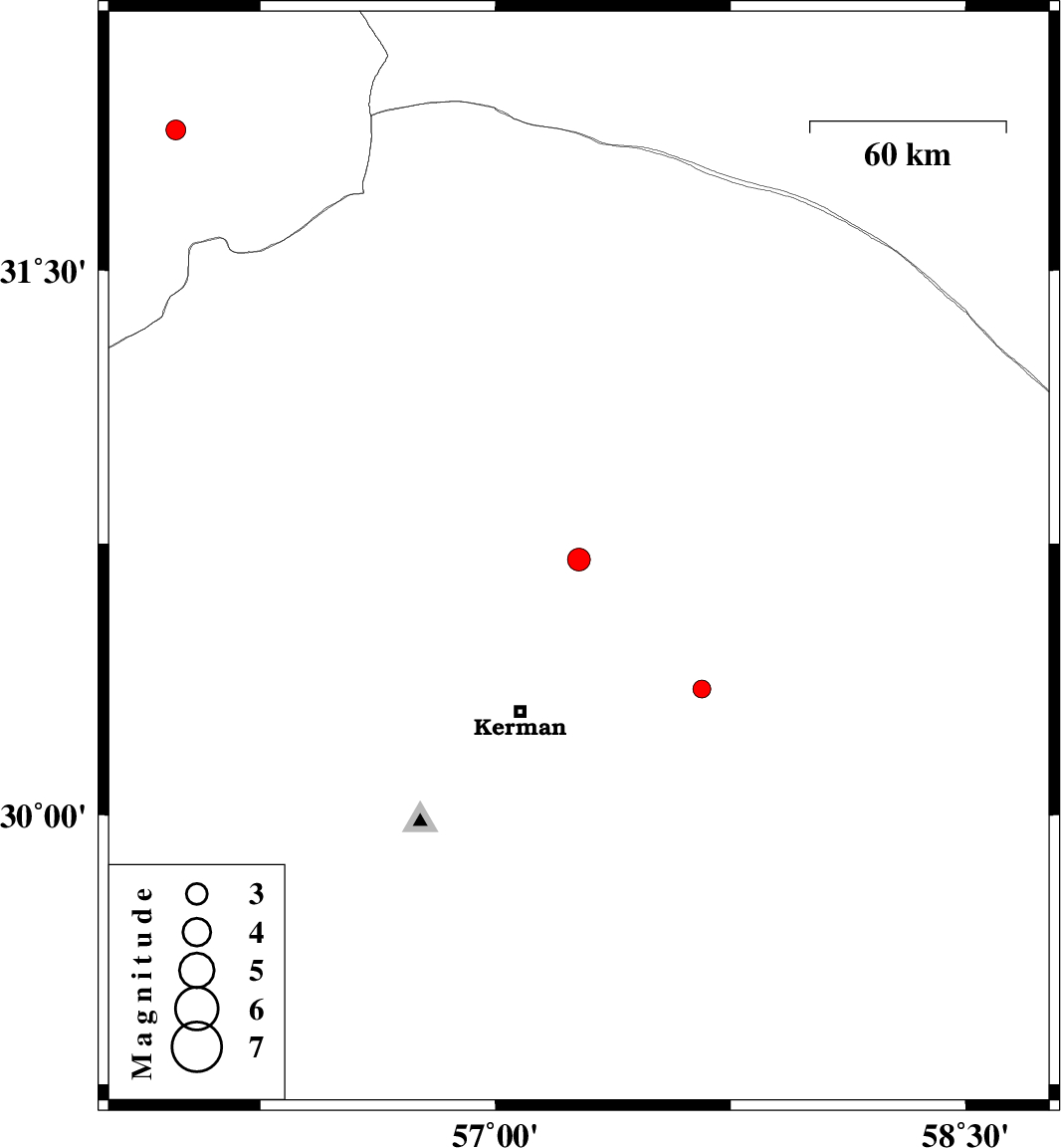 | 2017/08/12 | 10:29:35.1 | 14:59:35.1 | 30.707 | 57.266 | 14 | ML3.2 | Kerman Province, 50 km North-East of Kerman | ||