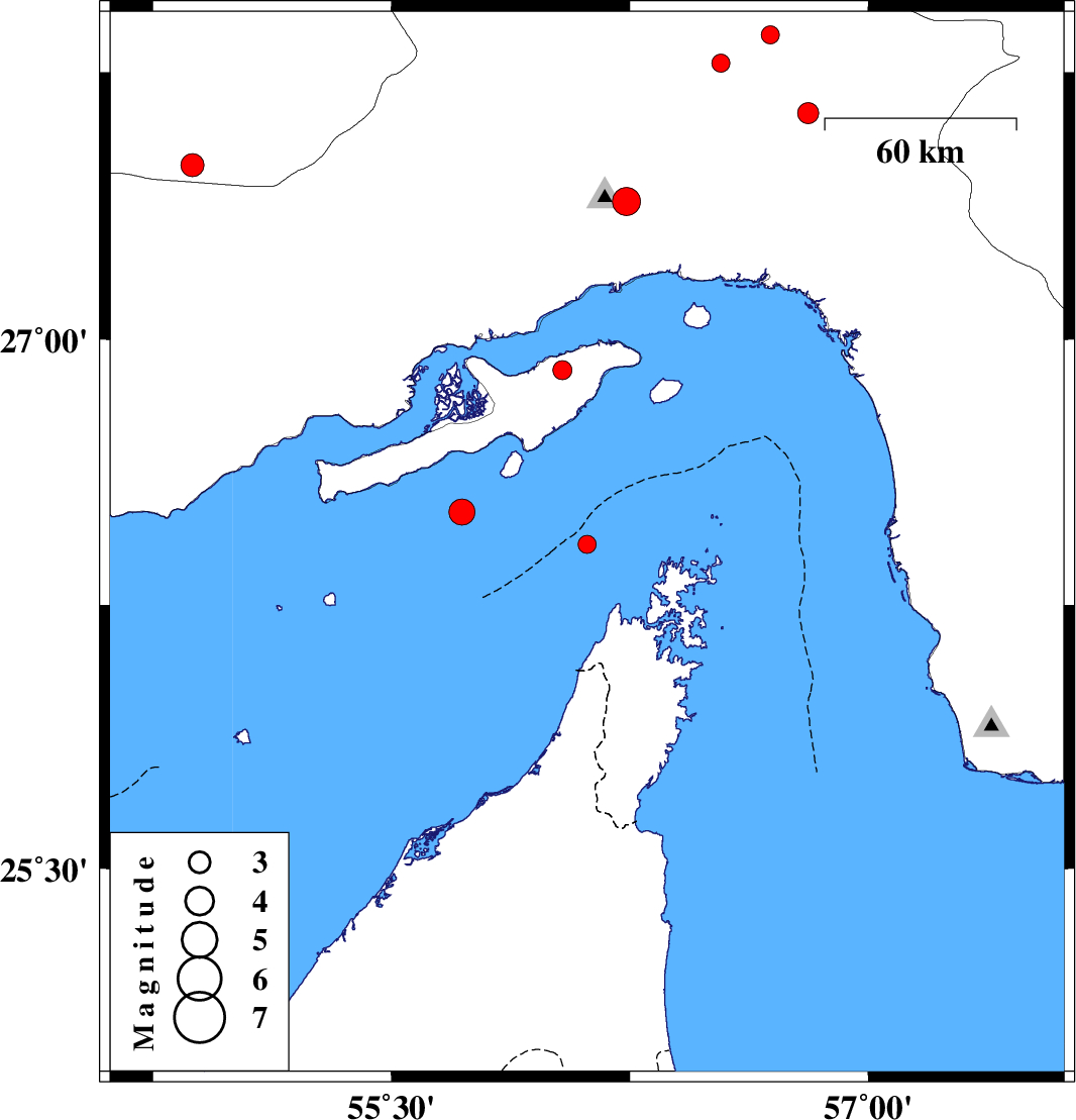 | 2017/07/19 | 22:06:43.5 | 02:36:43.5 | 26.914 | 56.037 | 12 | ML2.7 | Persian Gulf, 23 km -West of Qeshm |