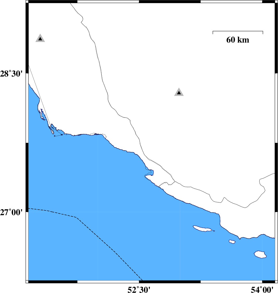 | 2017/08/11 | 00:59:02.8 | 05:29:02.8 | 27.752 | 52.654 | 14 | ML2.7 | Fars Province, 34 km -East of Jam | ||