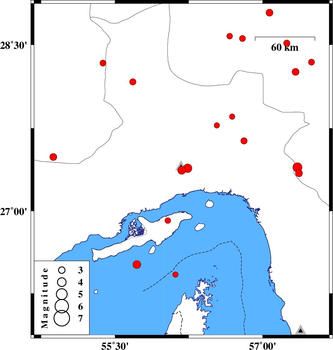 | 2017/07/19 | 22:06:43.5 | 02:36:43.5 | 26.914 | 56.037 | 12 | ML2.7 | Persian Gulf, 23 km -West of Qeshm |