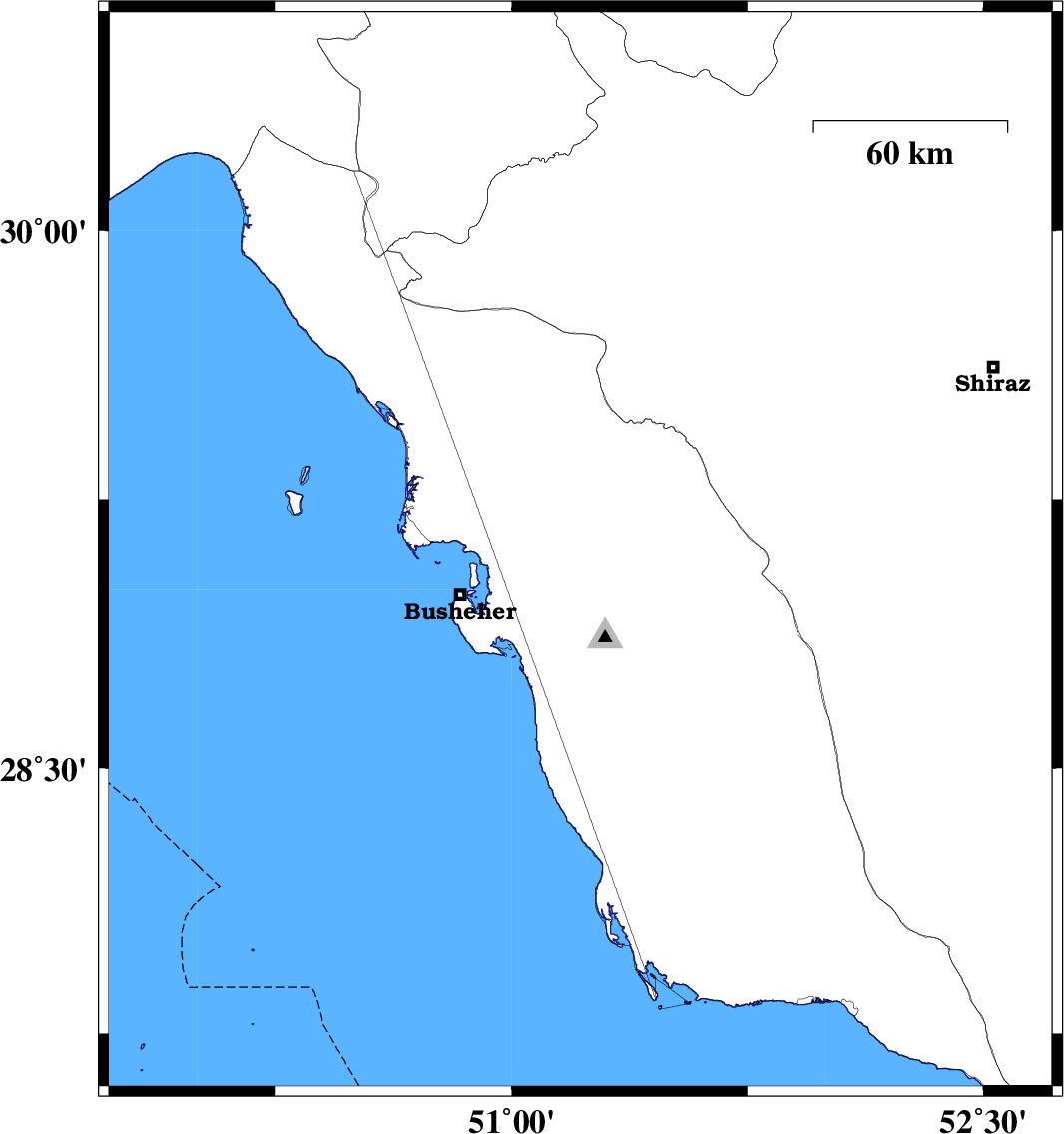 | 2017/08/19 | 11:32:42.4 | 16:02:42.4 | 29.103 | 51.219 | 15 | ML2.7 | Bushehr Province, 18 km South of Borazjan | ||