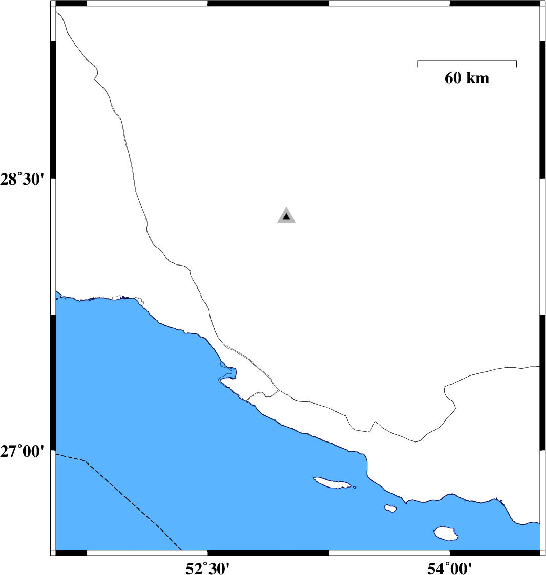 | 2017/07/27 | 02:50:43.6 | 07:20:43.6 | 28.416 | 53.285 | 6 | ML3.2 | Fars Province, 25 km -East of Qir va Karzin |