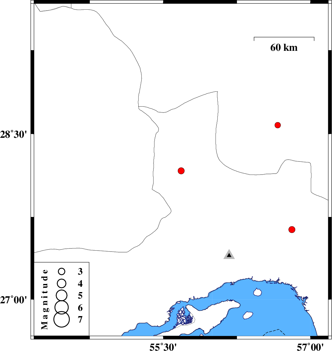| 2017/08/05 | 21:40:45.6 | 02:10:45.6 | 27.635 | 56.811 | 14 | ML2.9 | Hormozgan Province, 48 km North-West of Dehbarez |